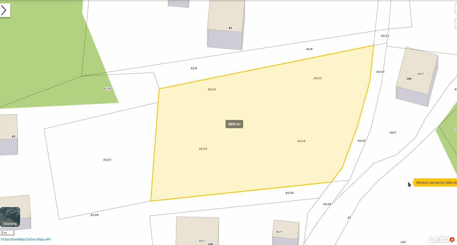 • Otoczenie: luźna zabudowa jednorodzinna i zagrodowa, blisko lasów oraz rezerwatu przyrody z głazami skalnymi.